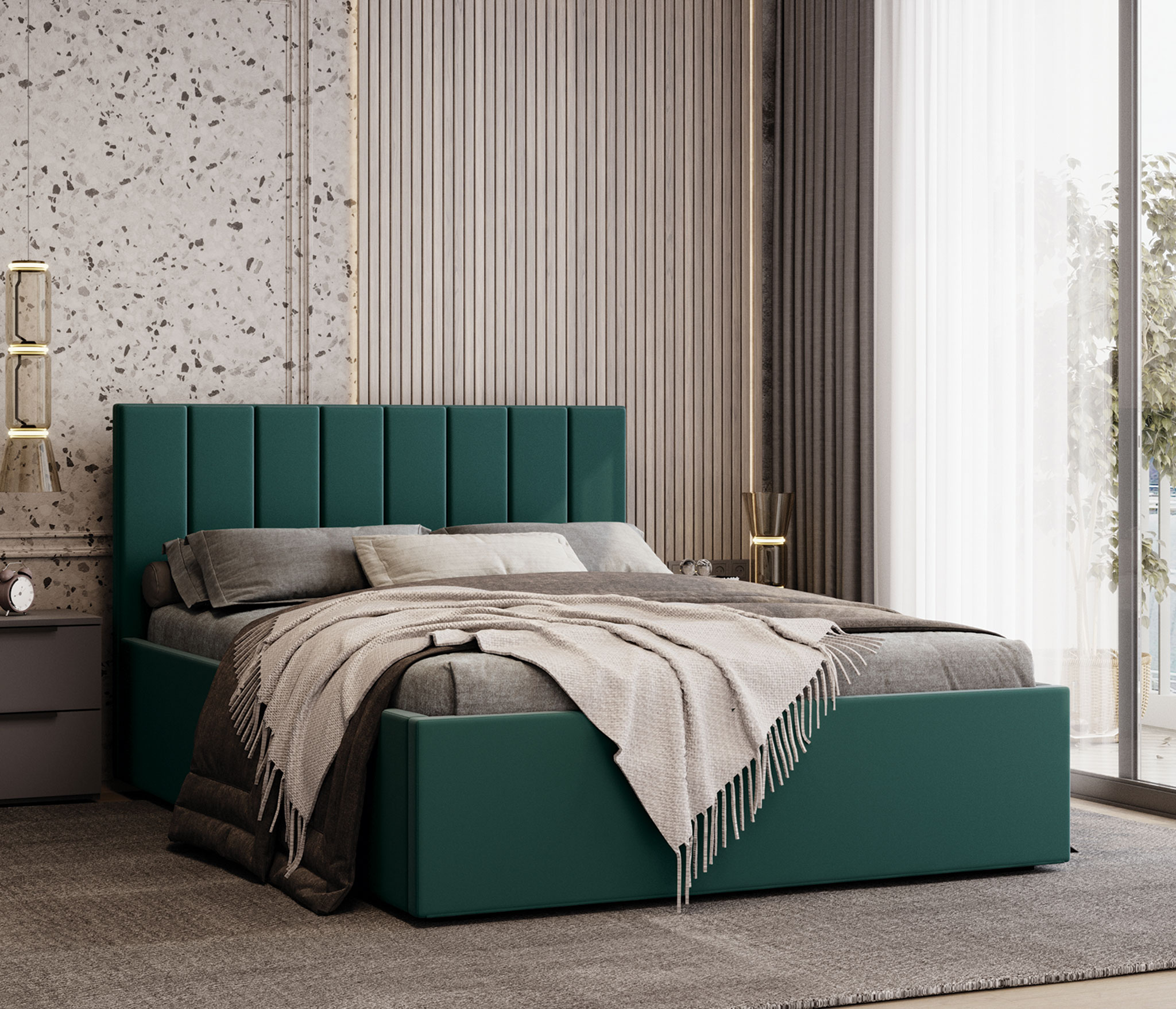 - основание под матрас 1400х2000 мм (прочные гнутоклееные березовые ламели)