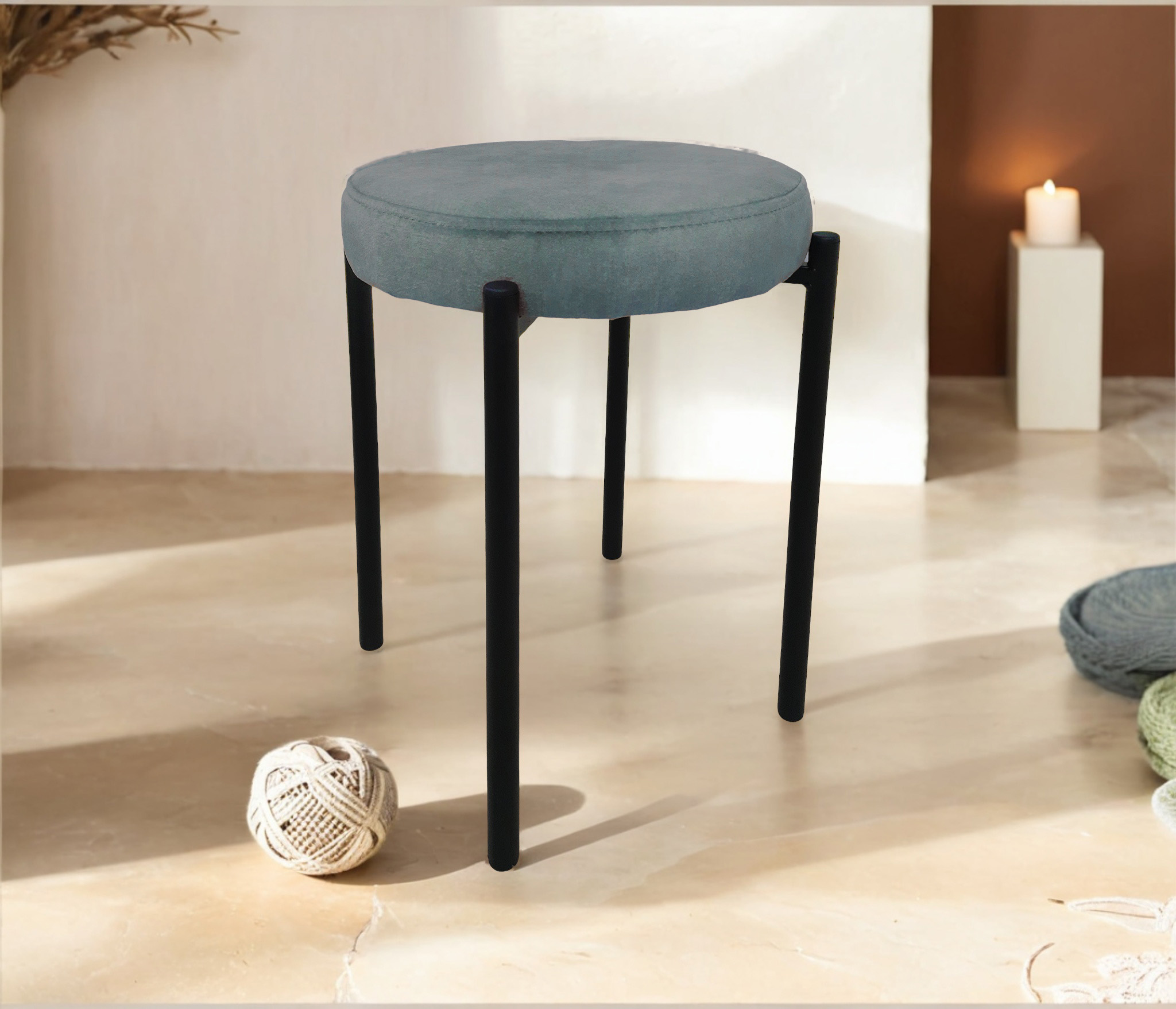Удобный, компактный табурет, если требуется компактное хранение нескольких штук, они идеально штабелируются, складываются друг на друга. Сиденье из ткани. Высота табурета 460 мм, ширина сидушки 350 мм, ширина по опорам внизу 290 мм.