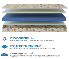 Легкий, прочный, жесткий матрас, который сделан без применения клеящих составов и подойдет даже для самых маленьких и дорогих сонь. Чехол матраса сделан из 100% хлопка. Рекомендовано использование с защитным чехлом Аквастоп. |