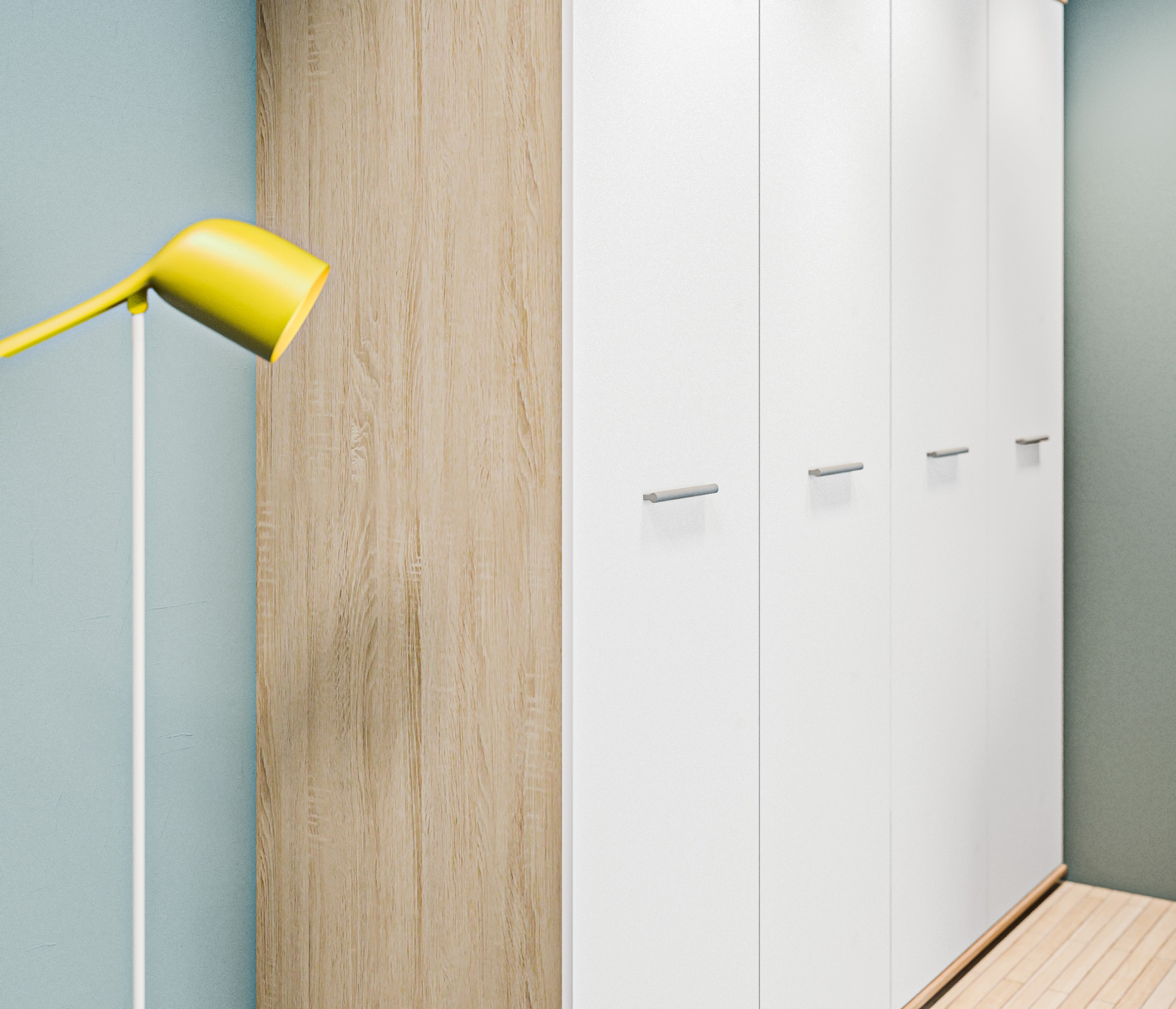 Внешне выглядит мебель довольно мило. Сборщики быстро установили шкаф, кровать, стеллаж и стол.