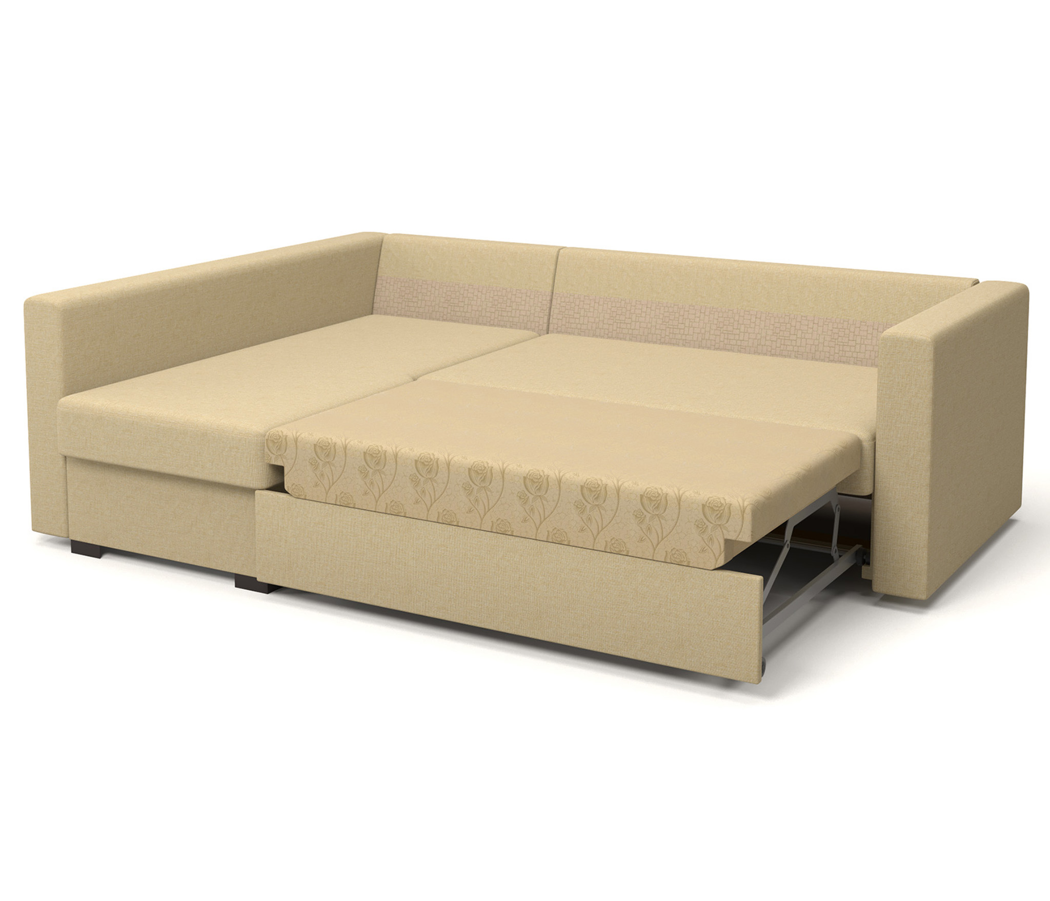 Каркас дивана «Джессика» выполнен из бруса и высокопрочной ЛДСП – ламинированной древесно-стружечной плиты, надежно удерживающей крепежные элементы.Мягкие части модели созданы на основе современного материала ППУ (пенополиуритана), полученного из синтетических полимеров и обработанного антигрибковым и антибактериальным составами. Материал долговечен, экологически безопасен, быстро восстанавливается после смятия, не плесневеет, не впитывает и не выделяет пыль. Обивка из рогожки приятна на ощупь, устойчива к разрывам и истиранию, не мнется, не растягивается и легко чистится.Простоту эксплуатации этого дивана обеспечивает выкатной механизм «Дельфин», позволяющий двумя движениями создать ровное и упругое спальное место размером 1400 х 1900 мм – достаточно выкатить вперед основание, а в освободившуюся нишу опустить спинку. Поэтому можно купить угловой диван «Джесика» для ежедневного пользования, а лаконичный дизайн и нейтральная цветовая гамма снимают ограничения при выборе дополнительных элементов интерьера – журнального столика, кресел, стеллажей и элементов декора.